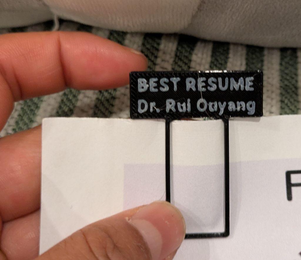 trying to focus on keeping it lighthearted and fun, to manage my anxiety so i keep applying to jobs (though honestly the 3x/week to be able to cover living expenses gives me a lot of momentum there. this would have been so helpful in the past, to be able to apply to jobs :/ it’s honestly a stable paycheck for stuff i’m already trying to do vs. frantically searching for contract work), i came up with a bad (no, terrible) idea of making paperclips that say “best resume here”. (came from a comic where the reviewers put stickers to flag the best resumes).